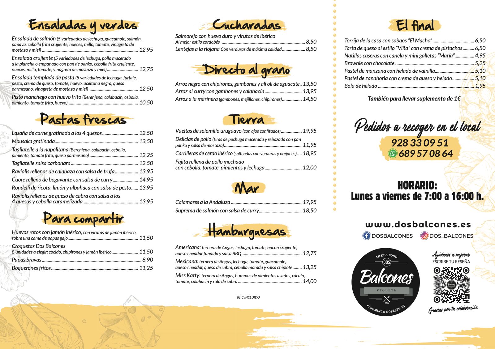 En «Dos Balcones», nuestra carta de restaurante se distingue por ofrecer una propuesta saludable, original y deliciosa, donde cada plato es elaborado con ingredientes de primera calidad, cuidadosamente seleccionados por nuestros expertos chefs. Nos enorgullecemos de combinar lo mejor de la cocina tradicional con toques innovadores, creando una experiencia culinaria única para nuestros comensales. Aquí, los sabores frescos y auténticos se fusionan con una presentación artística, haciendo de cada visita a nuestro restaurante una aventura gastronómica inolvidable que deleitará todos sus sentidos.